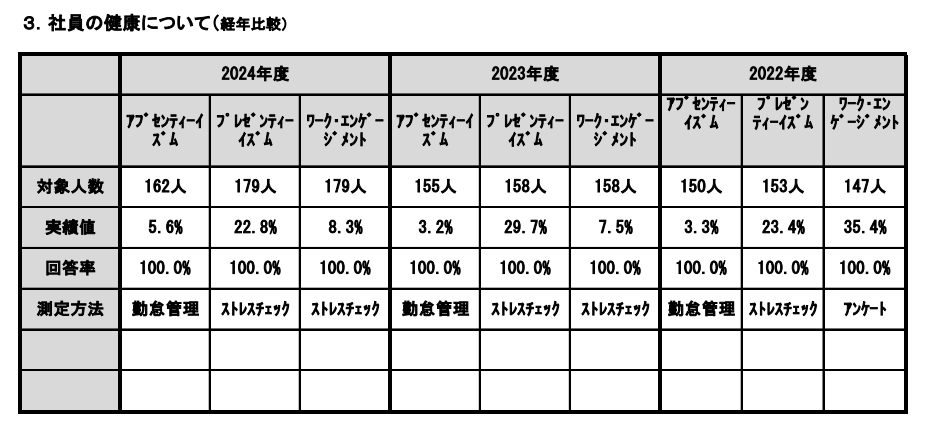 当社は、経営戦略に健康経営を位置づけ、健康経営で解決したい経営上の課題を特定し、